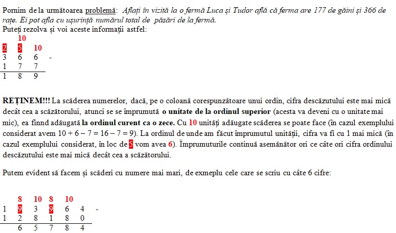 Lecția II.3 – Scăderea numerelor naturale cu trecere peste ordin