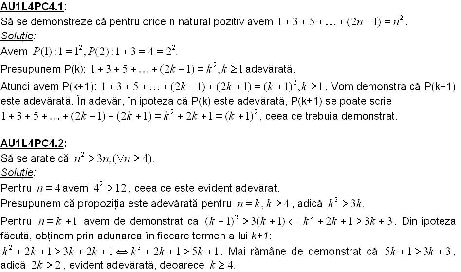 U1 L4 PC4 Aplicaţii rezolvate folosind inducţia matematică