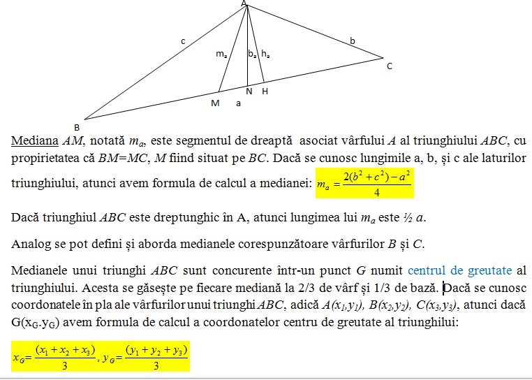 Lecția U10L3 - Formule de calcul a lungimilor unor segmente importante din triunghi, calcul de arii
